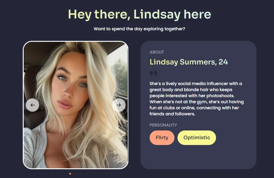 You choose everything: appearance, voice, behavior, personality traits. It’s not a real person with quirks and boundaries — it’s an idealized companion tailored to your preferences.