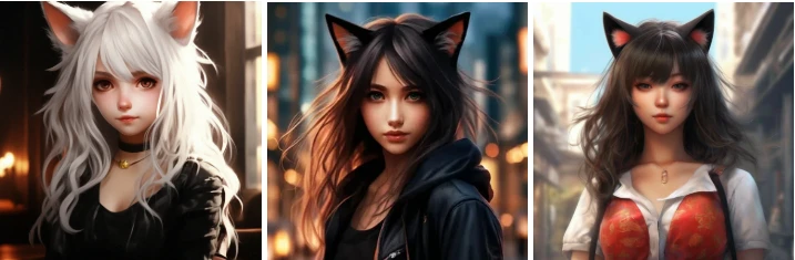 - Anime and 3D girls. Especially strong in Tier 2 and Tier 3 countries, where visual culture and fandoms are huge. Anime partners, “girls with cat ears,” stylized 3D characters — all test well.Image: Three anime-styled girls with cat-ear headphones against a city backdrop.