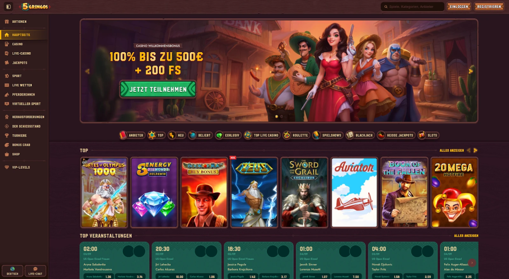 5Gringos is a Curacao-licensed online casino launched in 2019. Supports 6000+ games from 80 providers, available in 16 languages, fully mobile-optimized. Accepts fiat and crypto (BTC, ETH, LTC).